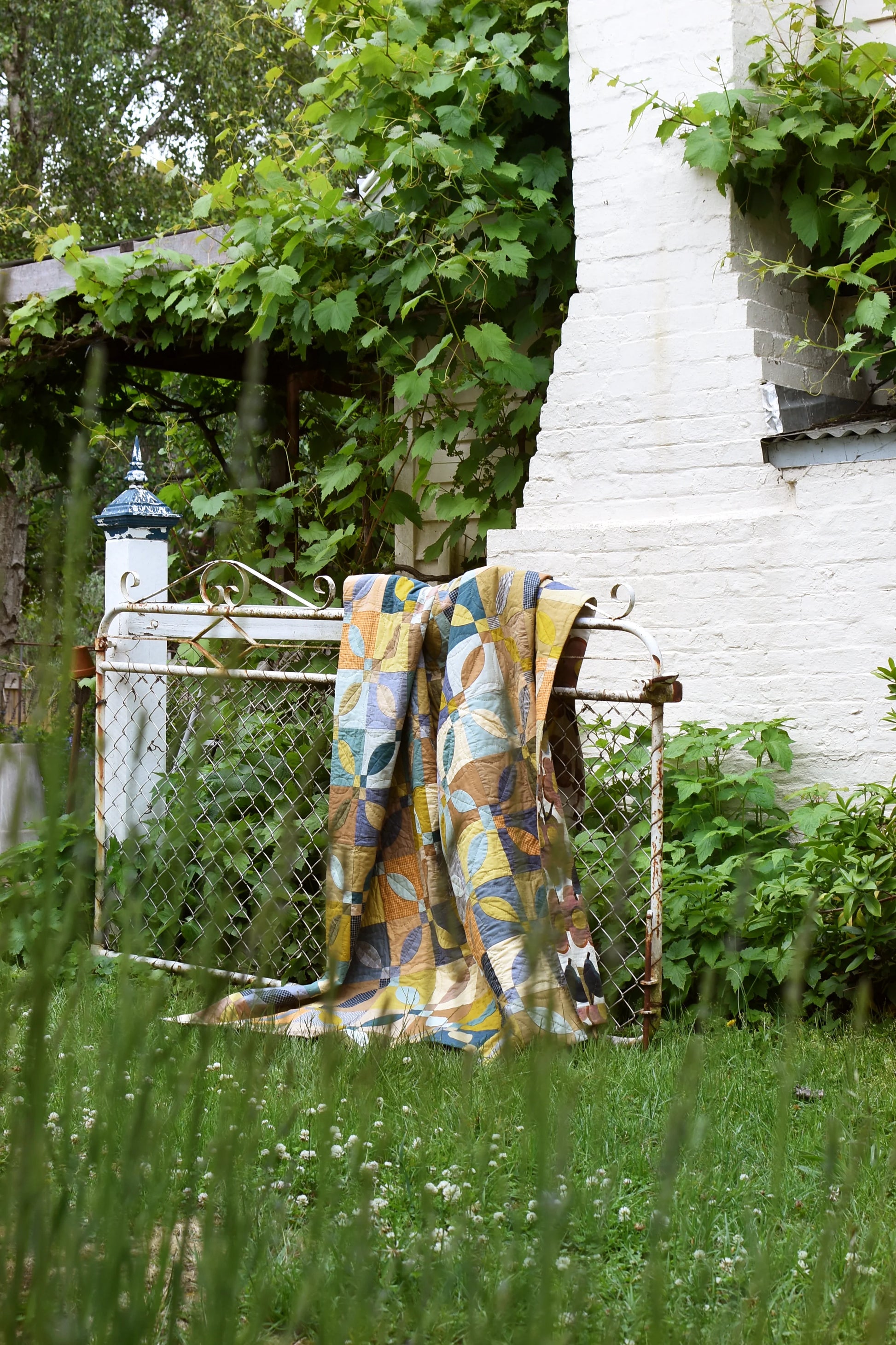 The classic True Lovers Knot block. Often made in 2 colors, Jen created a masterpiece using a limited palette of earthy tones. In this class, let's explore color options and learn how to hand piece one block.