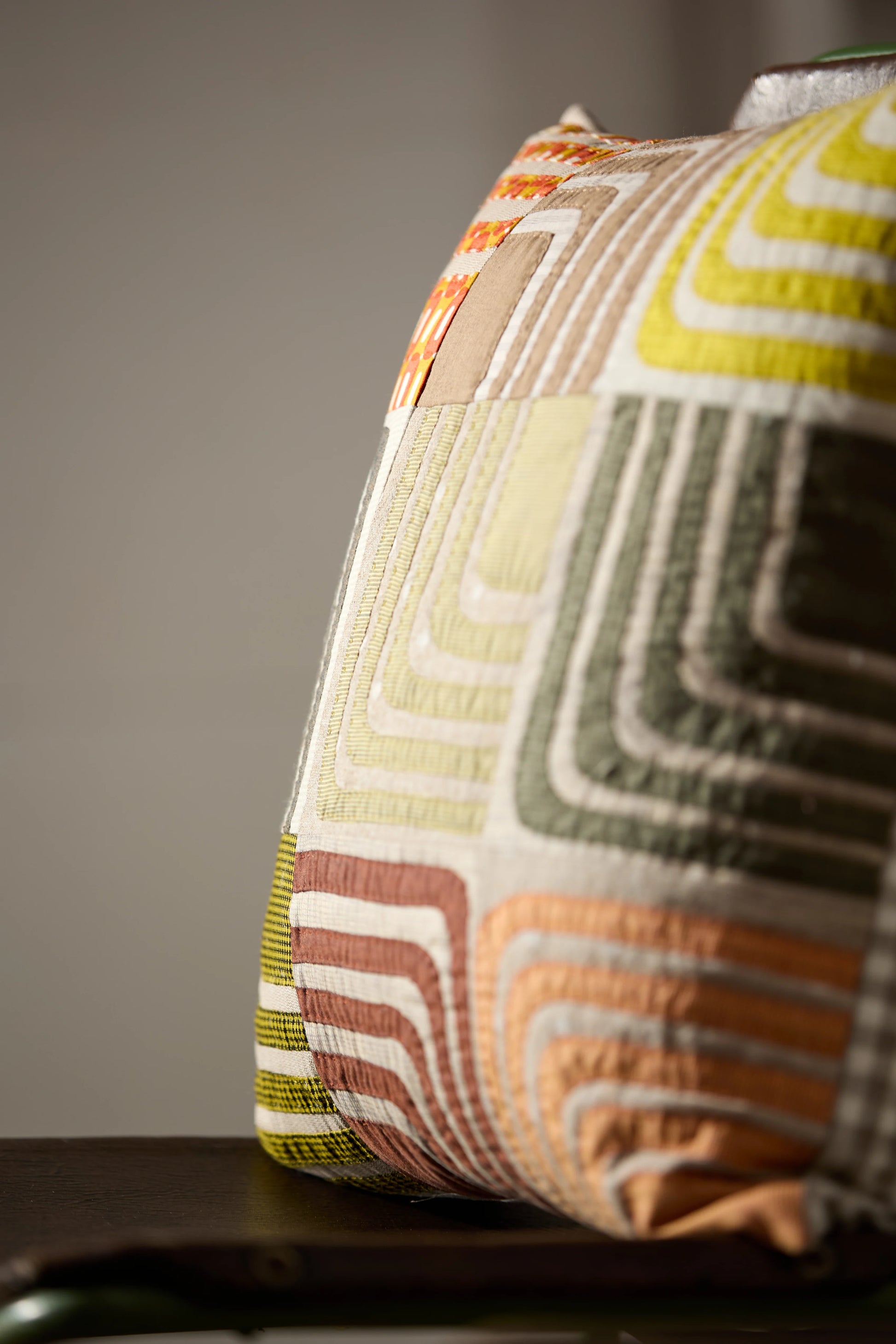 In this class, we'll create a color palette and organize fabric layout. for this modern pillow. Learn needle turn applique and big stitch quilting.